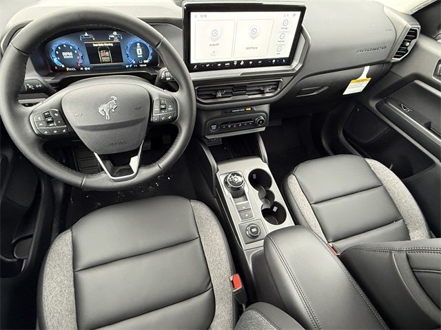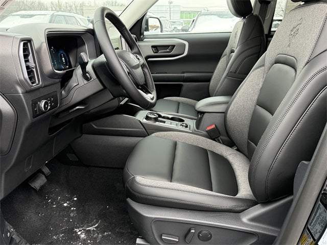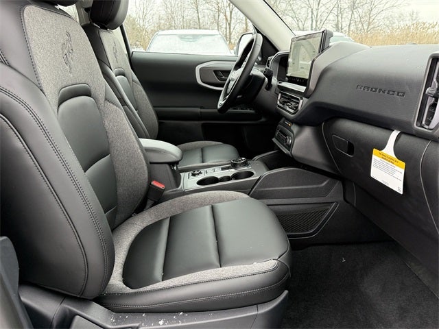 Shadow Black 2025 Ford Bronco Sport Big Bend 4WD 8-Speed Automatic 1.5L EcoBoost 4-Wheel Disc Brakes, 6 Speakers, ABS brakes, Air Conditioning, Alloy wheels, AM/FM radio: SiriusXM, AM/FM Stereo, Auto High-beam Headlights, Automatic temperature control, Black Appearance Package, Brake assist, Carbon Black Grille w/Black BRONCO Lettering, Cargo Mat, Cloth w/Easy-to-Clean Front Bucket Seats, Compass, Convenience Package, Delay-off headlights, Driver door bin, Driver vanity mirror, Dual front impact airbags, Dual front side impact airbags, Electronic Stability Control, Emergency communication system: SYNC 4 911 Assist, Equipment Group 200A, Four wheel independent suspension, Front & Rear Floor Liners w/o Carpet Mats, Front anti-roll bar, Front Bucket Seats, Front Center Armrest, Front Driver/Passenger Seat Back Map Pockets, Front reading lights, Fully automatic headlights, Heated 8-Way Power Driver's Seat, Heated door mirrors, Illuminated entry, Knee airbag, LED Fog Lamps, Liftgate w/Black BRONCO SPORT Lettering, Low tire pressure warning, Occupant sensing airbag, Outside temperature display, Overhead airbag, Overhead console, Painted Shadow Black Roof, Panic alarm, Passenger door bin, Passenger vanity mirror, Power door mirrors, Power steering, Power windows, Premium Trimmed Htd Fr Sport Contour Bucket Seats, Premium Wrapped Steering Wheel, Radio data system, Rear anti-roll bar, Rear Parking Sensors, Rear reading lights, Rear seat center armrest, Rear window defroster, Rear window wiper, Remote keyless entry, Security system, SiriusXM, Speed control, Speed-sensing steering, Speed-Sensitive Wipers, Split folding rear seat, Steering wheel mounted audio controls, SYNC 4 w/Enhanced Voice Recognition, Tachometer, Telescoping steering wheel, Tilt steering wheel, Traction control, Trip computer, Universal Garage Door Opener (UGDO), Variably intermittent wipers, Wheels: 17 Carbonized Gray-Painted Aluminum, Wheels: 17 Matte Black-Painted Aluminum.