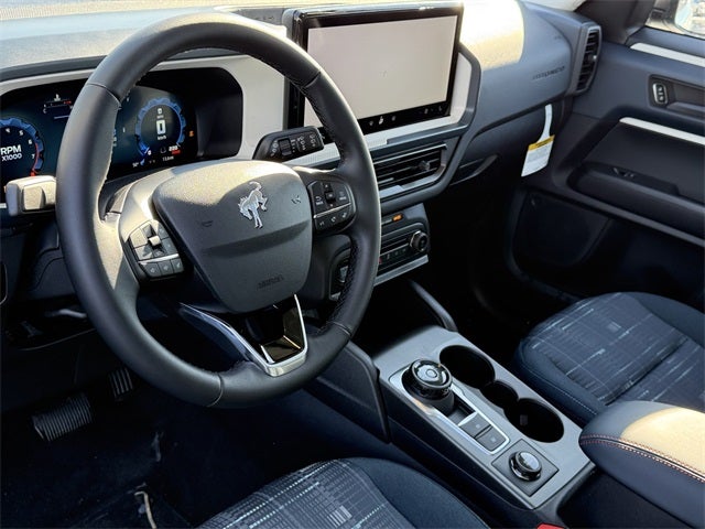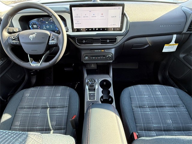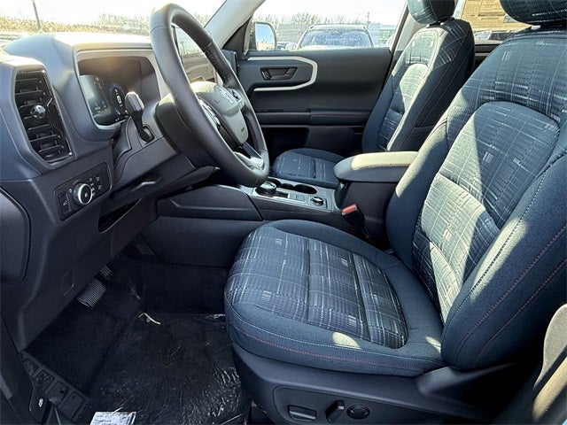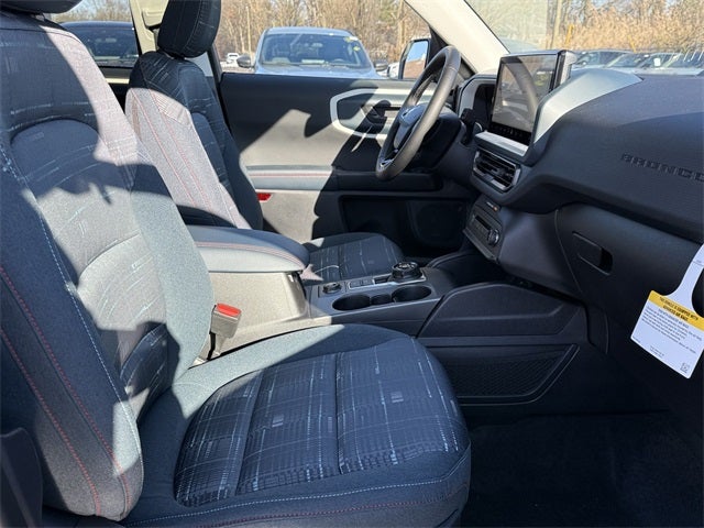 Robins Egg Blue 2025 Ford Bronco Sport Heritage 4WD 8-Speed Automatic 1.5L EcoBoost 4-Wheel Disc Brakes, 6 Speakers, ABS brakes, Air Conditioning, Alloy wheels, AM/FM radio: SiriusXM, AM/FM Stereo, Auto High-beam Headlights, Automatic temperature control, Brake assist, Cargo Mat, Compass, Convenience Package, Delay-off headlights, Driver door bin, Driver vanity mirror, Dual front impact airbags, Dual front side impact airbags, Electronic Stability Control, Emergency communication system: SYNC 4 911 Assist, Four wheel independent suspension, Front & Rear Floor Liners w/o Carpet Mats, Front anti-roll bar, Front Bucket Seats, Front Center Armrest, Front Driver/Passenger Seat Back Map Pockets, Front reading lights, Fully automatic headlights, Heated 8-Way Power Driver's Seat, Heated door mirrors, Illuminated entry, Knee airbag, LED Fog Lamps, Low tire pressure warning, Occupant sensing airbag, Outside temperature display, Overhead airbag, Overhead console, Panic alarm, Passenger door bin, Passenger vanity mirror, Plaid Cloth Front Bucket Seats, Power door mirrors, Power Moonroof, Power steering, Power windows, Premium Wrapped Steering Wheel, Radio data system, Rear anti-roll bar, Rear Parking Sensors, Rear reading lights, Rear seat center armrest, Rear window defroster, Rear window wiper, Remote keyless entry, Security system, SiriusXM, Speed control, Speed-sensing steering, Speed-Sensitive Wipers, Split folding rear seat, Steering wheel mounted audio controls, SYNC 4 w/Enhanced Voice Recognition, Tachometer, Telescoping steering wheel, Tilt steering wheel, Traction control, Trip computer, Universal Garage Door Opener (UGDO), Variably intermittent wipers, Wheels: 17 Oxford White-Painted Aluminum.