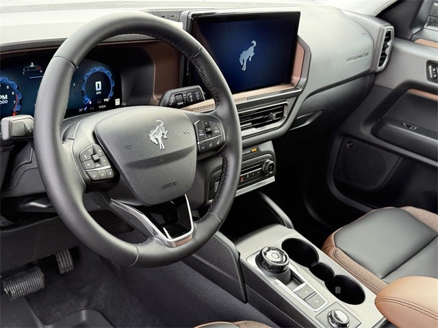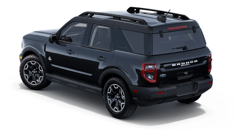 Shadow Black 2025 Ford Bronco Sport Outer Banks 4WD 8-Speed Automatic 1.5L EcoBoost 360-Degree Camera w/Trail & Split View, 4-Wheel Disc Brakes, 6 Speakers, ABS brakes, Air Conditioning, Alloy wheels, AM/FM radio: SiriusXM, AM/FM Stereo, Auto High-beam Headlights, Auto-dimming Rear-View mirror, Automatic temperature control, B&O Sound System by Bang & Olufsen, Brake assist, Compass, Connected Navigation, Delay-off headlights, Driver door bin, Driver vanity mirror, Dual front impact airbags, Dual front side impact airbags, Electronic Stability Control, Emergency communication system: SYNC 4 911 Assist, Four wheel independent suspension, Front & Rear Floor Liners w/o Carpet Mats, Front anti-roll bar, Front Bucket Seats, Front Center Armrest, Front Driver/Passenger Seat Back Map Pockets, Front dual zone A/C, Front fog lights, Front Parking Sensors, Front reading lights, Fully automatic headlights, Garage door transmitter, HD Radio, Heated door mirrors, Heated front seats, Heated steering wheel, Illuminated entry, Knee airbag, Low tire pressure warning, Memory seat, Occupant sensing airbag, Outer Banks Tech Package+, Outside temperature display, Overhead airbag, Overhead console, Panic alarm, Passenger door bin, Passenger vanity mirror, Power door mirrors, Power driver seat, Power Moonroof, Power passenger seat, Power steering, Power windows, Premium Trimmed Front Bucket Seats w/Ebony/Roast, Radio data system, Rain sensing wipers, Rear anti-roll bar, Rear Parking Sensors, Rear reading lights, Rear seat center armrest, Rear window defroster, Rear window wiper, Remote keyless entry, Reverse Brake Assist, Security system, SiriusXM, Speed control, Speed-sensing steering, Speed-Sensitive Wipers, Split folding rear seat, Steering wheel mounted audio controls, SYNC 4 w/Enhanced Voice Recognition, Tachometer, Telescoping steering wheel, Tilt steering wheel, Traction control, Trip computer, Variably intermittent wipers, Wheels: 18 Ebony Black-Painted Aluminum.