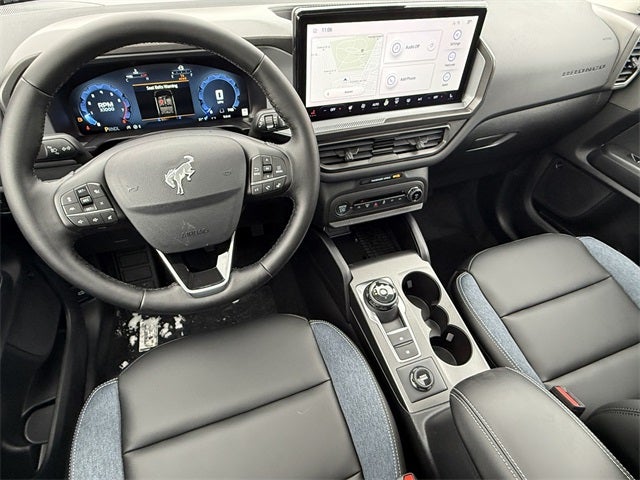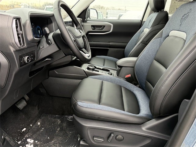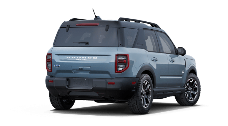 Azure Gray Metallic Tri-Coat 2025 Ford Bronco Sport Outer Banks 4WD 8-Speed Automatic 1.5L EcoBoost 360-Degree Camera w/Trail & Split View, 4-Wheel Disc Brakes, 6 Speakers, ABS brakes, Air Conditioning, Alloy wheels, AM/FM radio: SiriusXM, AM/FM Stereo, Auto High-beam Headlights, Auto-dimming Rear-View mirror, Automatic temperature control, B&O Sound System by Bang & Olufsen, Brake assist, Compass, Connected Navigation, Delay-off headlights, Driver door bin, Driver vanity mirror, Dual front impact airbags, Dual front side impact airbags, Electronic Stability Control, Emergency communication system: SYNC 4 911 Assist, Four wheel independent suspension, Front anti-roll bar, Front Bucket Seats, Front Center Armrest, Front Driver/Passenger Seat Back Map Pockets, Front dual zone A/C, Front fog lights, Front Parking Sensors, Front reading lights, Fully automatic headlights, Garage door transmitter, HD Radio, Heated door mirrors, Heated front seats, Heated steering wheel, Illuminated entry, Knee airbag, Low tire pressure warning, Memory seat, Occupant sensing airbag, Outer Banks Tech Package+, Outside temperature display, Overhead airbag, Overhead console, Panic alarm, Passenger door bin, Passenger vanity mirror, Power door mirrors, Power driver seat, Power Moonroof, Power passenger seat, Power steering, Power windows, Premium Trimmed Front Bucket Seats w/Ebony/Roast, Radio data system, Rain sensing wipers, Rear anti-roll bar, Rear Parking Sensors, Rear reading lights, Rear seat center armrest, Rear window defroster, Rear window wiper, Remote keyless entry, Reverse Brake Assist, Security system, SiriusXM, Speed control, Speed-sensing steering, Speed-Sensitive Wipers, Split folding rear seat, Steering wheel mounted audio controls, SYNC 4 w/Enhanced Voice Recognition, Tachometer, Telescoping steering wheel, Tilt steering wheel, Traction control, Trip computer, Variably intermittent wipers, Wheels: 18 Ebony Black-Painted Aluminum.