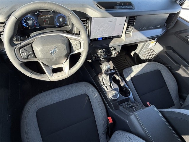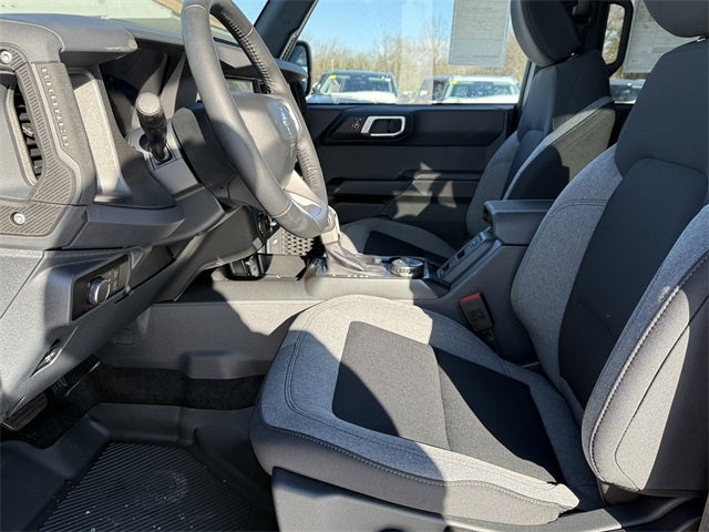 Ruby Red Metallic Tinted Clearcoat 2025 Ford Bronco Big Bend 4WD 10-Speed Automatic 2.3L EcoBoost I-4 4-Wheel Disc Brakes, 4.46 Axle Ratio, 7 Speakers, ABS brakes, Air Conditioning, Alloy wheels, AM/FM radio: SiriusXM with 360L, AM/FM Stereo, Auto High-beam Headlights, Brake assist, Cloth Bucket Seats, Compass, Delay-off headlights, Driver door bin, Driver vanity mirror, Dual front impact airbags, Dual front side impact airbags, Electronic Stability Control, Emergency communication system: 911 Assist, Exterior Parking Camera Rear, Front anti-roll bar, Front Bucket Seats, Front Center Armrest, Front reading lights, Front wheel independent suspension, Fully automatic headlights, Heated door mirrors, Illuminated entry, Integrated roll-over protection, Internet access capable: FordPass Connect, Leather Shift Knob, Low tire pressure warning, Occupant sensing airbag, Outside temperature display, Overhead airbag, Overhead console, Panic alarm, Passenger door bin, Passenger vanity mirror, Power door mirrors, Power steering, Power windows, Radio data system, Remote keyless entry, Security system, SiriusXM w/360L, Speed control, Split folding rear seat, Steering wheel mounted audio controls, SYNC 4, Tachometer, Telescoping steering wheel, Tilt steering wheel, Traction control, Trip computer, Variably intermittent wipers, Wheels: 17 Carbonized Gray-Painted Aluminum.