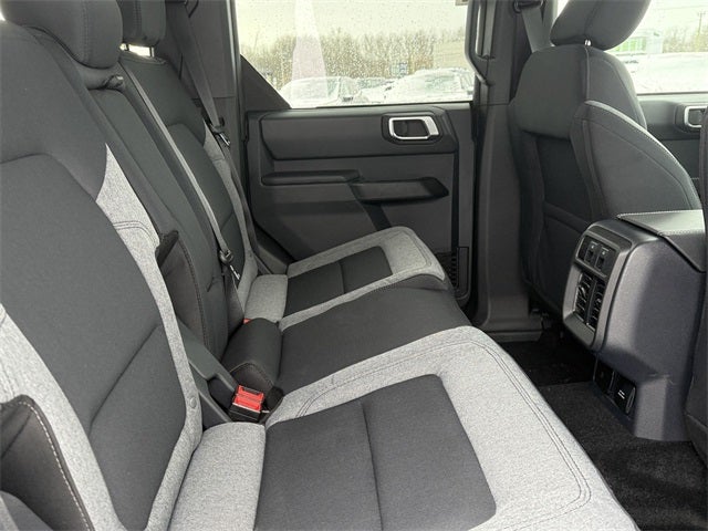 Shadow Black 2025 Ford Bronco Big Bend 4WD 10-Speed Automatic 2.3L EcoBoost I-4 4-Wheel Disc Brakes, 4.46 Axle Ratio, 7 Speakers, ABS brakes, Air Conditioning, Alloy wheels, AM/FM radio: SiriusXM with 360L, AM/FM Stereo, Auto High-beam Headlights, Brake assist, Cloth Bucket Seats, Compass, Delay-off headlights, Driver door bin, Driver vanity mirror, Dual front impact airbags, Dual front side impact airbags, Electronic Stability Control, Emergency communication system: 911 Assist, Exterior Parking Camera Rear, Front anti-roll bar, Front Bucket Seats, Front Center Armrest, Front reading lights, Front wheel independent suspension, Fully automatic headlights, Heated door mirrors, Illuminated entry, Integrated roll-over protection, Internet access capable: FordPass Connect, Leather Shift Knob, Low tire pressure warning, Occupant sensing airbag, Outside temperature display, Overhead airbag, Overhead console, Panic alarm, Passenger door bin, Passenger vanity mirror, Power door mirrors, Power steering, Power windows, Radio data system, Remote keyless entry, Security system, SiriusXM w/360L, Speed control, Split folding rear seat, Steering wheel mounted audio controls, SYNC 4, Tachometer, Telescoping steering wheel, Tilt steering wheel, Traction control, Trip computer, Variably intermittent wipers, Wheels: 17 Carbonized Gray-Painted Aluminum.