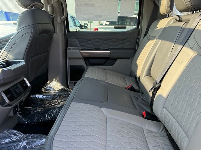 Star White Metallic Tri-Coat 2025 Ford F-150 Platinum 4WD 10-Speed Automatic 3.5L PowerBoost Full-Hybrid V6 3.5L PowerBoost Full-Hybrid V6, 4WD, 4-Wheel Disc Brakes, 8 Speakers, ABS brakes, Adjustable pedals, Air Conditioning, Alloy wheels, AM/FM radio: SiriusXM with 360L, Auto High-beam Headlights, Auto tilt-away steering wheel, Auto-dimming door mirrors, Auto-dimming Rear-View mirror, Automatic temperature control, Brake assist, Bumpers: body-color, Compass, Delay-off headlights, Driver door bin, Driver vanity mirror, Dual front impact airbags, Dual front side impact airbags, Electronic Stability Control, Emergency communication system: SYNC 4 911 Assist, Front anti-roll bar, Front Bucket Seats, Front Center Armrest, Front dual zone A/C, Front fog lights, Front reading lights, Front wheel independent suspension, Fully automatic headlights, Garage door transmitter, Heated door mirrors, Heated front seats, Heated rear seats, Heated steering wheel, Illuminated entry, Internet access capable: FordPass Connect 5G, Leather steering wheel, Low tire pressure warning, Memory seat, Navigation system: Connected Navigation, Occupant sensing airbag, Outside temperature display, Overhead airbag, Overhead console, Panic alarm, Passenger door bin, Passenger vanity mirror, Pedal memory, Power door mirrors, Power driver seat, Power passenger seat, Power steering, Power windows, Radio data system, Radio: B&O Sound System by Bang & Olufsen, Rain sensing wipers, Rear reading lights, Rear seat center armrest, Rear step bumper, Rear window defroster, Remote keyless entry, Security system, Speed control, Split folding rear seat, Steering wheel memory, Steering wheel mounted audio controls, SYNC 4 w/Enhanced Voice Recognition, Tachometer, Telescoping steering wheel, Tilt steering wheel, Traction control, Trip computer, Turn signal indicator mirrors, Unique Multi-Contour Leather Bucket Seats, Variably intermittent wipers, Ventilated front seats, Voltmeter, Wheels: 20 Painted Gloss Ebony Black, 3.5L PowerBoost Full-Hybrid V6, 4WD.