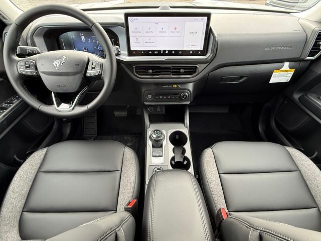 Carbonized Gray Metallic 2026 Ford Bronco Sport Big Bend 4WD 8-Speed Automatic 1.5L EcoBoost 4-Wheel Disc Brakes, 6 Speakers, ABS brakes, Air Conditioning, Alloy wheels, AM/FM radio: SiriusXM with 360L, AM/FM Stereo, Apple CarPlay/Android Auto, Auto High-beam Headlights, Automatic temperature control, Black Appearance Package, Brake assist, Carbon Black Grille with Black Painted BRONCO Lettering, Cargo Mat, Cloth with Easy-to-Clean Front Bucket Seats, Compass, Convenience Package, Delay-off headlights, Driver door bin, Driver vanity mirror, Dual front impact airbags, Dual front side impact airbags, Electronic Stability Control, Emergency communication system: SYNC 4 911 Assist, Exterior Parking Camera Rear, Ford Connectivity Package (1-Year Included), Four wheel independent suspension, Front and Rear Floor Liners Without Carpet Mats, Front anti-roll bar, Front Bucket Seats, Front Center Armrest, Front Driver/Passenger Seat Back Map Pockets, Front reading lights, Fully automatic headlights, Heated 8-Way Power Driver's Seat, Heated door mirrors, Illuminated entry, Internet access capable: 5G Modem - Ford Connectivity Package, Knee airbag, LED Fog Lamps, Liftgate with Black BRONCO SPORT Lettering, Low tire pressure warning, Occupant sensing airbag, Outside temperature display, Overhead airbag, Overhead console, Painted Shadow Black Roof, Panic alarm, Passenger door bin, Passenger vanity mirror, Power door mirrors, Power steering, Power windows, Premium Trimmed Front Sport Contour Bucket Seats, Premium Wrapped Steering Wheel, Radio data system, Rear anti-roll bar, Rear Parking Sensors, Rear reading lights, Rear seat center armrest, Rear window defroster, Rear window wiper, Remote keyless entry, Security system, SiriusXM with 360L, Speed control, Speed-sensing steering, Speed-Sensitive Wipers, Split folding rear seat, Steering wheel mounted audio controls, SYNC 4 with Enhanced Voice Recognition, Tachometer, Telescoping steering wheel, Tilt steering wheel, Traction control, Trip computer, Variably intermittent wipers, Wheels: 17 Carbonized Gray Painted Aluminum, Wheels: 17 Matte Black-Painted Aluminum.