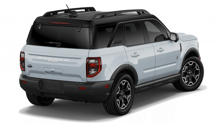 Space White Metallic 2026 Ford Bronco Sport Outer Banks 4WD 8-Speed Automatic 1.5L EcoBoost 360-Degree Camera with Trail View, 4-Wheel Disc Brakes, 6 Speakers, ABS brakes, Air Conditioning, Alloy wheels, AM/FM radio: SiriusXM with 360L, AM/FM Stereo, Apple CarPlay/Android Auto, Auto High-beam Headlights, Auto-dimming Rear-View mirror, Automatic temperature control, Brake assist, Compass, Connected Navigation (1-Year Included), Delay-off headlights, Driver door bin, Driver vanity mirror, Dual front impact airbags, Dual front side impact airbags, Electronic Stability Control, Emergency communication system: SYNC 4 911 Assist, Exterior Parking Camera Rear, Ford Connectivity Package (1-Year Included), Four wheel independent suspension, Front and Rear Floor Liners Without Carpet Mats, Front anti-roll bar, Front Bucket Seats, Front Center Armrest, Front Driver/Passenger Seat Back Map Pockets, Front dual zone A/C, Front fog lights, Front Parking Sensors, Front reading lights, Fully automatic headlights, Heated door mirrors, Heated front seats, Heated steering wheel, Illuminated entry, Internet access capable: 5G Modem - Ford Connectivity Package, Knee airbag, Low tire pressure warning, Memory seat, Occupant sensing airbag, Outer Banks Tech Package+, Outside temperature display, Overhead airbag, Overhead console, Panic alarm, Passenger door bin, Passenger vanity mirror, Power door mirrors, Power driver seat, Power Moonroof, Power passenger seat, Power steering, Power windows, Radio data system, Radio: HD w/B&O Sound System by Bang & Olufsen, Rear anti-roll bar, Rear Parking Sensors, Rear reading lights, Rear seat center armrest, Rear window defroster, Rear window wiper, Remote keyless entry, Reverse Brake Assist, Security system, SiriusXM with 360L, Speed control, Speed-sensing steering, Speed-Sensitive Wipers, Split folding rear seat, Steering wheel mounted audio controls, SYNC 4 with Enhanced Voice Recognition, Tachometer, Telescoping steering wheel, Tilt steering wheel, Traction control, Trip computer, Variably intermittent wipers, Wheels: 18 Ebony Black.