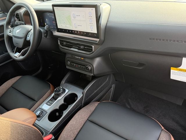 Shadow Black 2026 Ford Bronco Sport Outer Banks 4WD 8-Speed Automatic 1.5L EcoBoost 360-Degree Camera with Trail View, 4-Wheel Disc Brakes, 6 Speakers, ABS brakes, Air Conditioning, Alloy wheels, AM/FM radio: SiriusXM with 360L, AM/FM Stereo, Apple CarPlay/Android Auto, Auto High-beam Headlights, Auto-dimming Rear-View mirror, Automatic temperature control, Brake assist, Compass, Connected Navigation (1-Year Included), Delay-off headlights, Driver door bin, Driver vanity mirror, Dual front impact airbags, Dual front side impact airbags, Electronic Stability Control, Emergency communication system: SYNC 4 911 Assist, Exterior Parking Camera Rear, Ford Connectivity Package (1-Year Included), Four wheel independent suspension, Front and Rear Floor Liners Without Carpet Mats, Front anti-roll bar, Front Bucket Seats, Front Center Armrest, Front Driver/Passenger Seat Back Map Pockets, Front dual zone A/C, Front fog lights, Front Parking Sensors, Front reading lights, Fully automatic headlights, Heated door mirrors, Heated front seats, Heated steering wheel, Illuminated entry, Internet access capable: 5G Modem - Ford Connectivity Package, Knee airbag, Low tire pressure warning, Memory seat, Occupant sensing airbag, Outer Banks Tech Package+, Outside temperature display, Overhead airbag, Overhead console, Panic alarm, Passenger door bin, Passenger vanity mirror, Power door mirrors, Power driver seat, Power Moonroof, Power passenger seat, Power steering, Power windows, Radio data system, Radio: HD w/B&O Sound System by Bang & Olufsen, Rear anti-roll bar, Rear Parking Sensors, Rear reading lights, Rear seat center armrest, Rear window defroster, Rear window wiper, Remote keyless entry, Reverse Brake Assist, Security system, SiriusXM with 360L, Speed control, Speed-sensing steering, Speed-Sensitive Wipers, Split folding rear seat, Steering wheel mounted audio controls, SYNC 4 with Enhanced Voice Recognition, Tachometer, Telescoping steering wheel, Tilt steering wheel, Traction control, Trip computer, Variably intermittent wipers, Wheels: 18 Ebony Black.