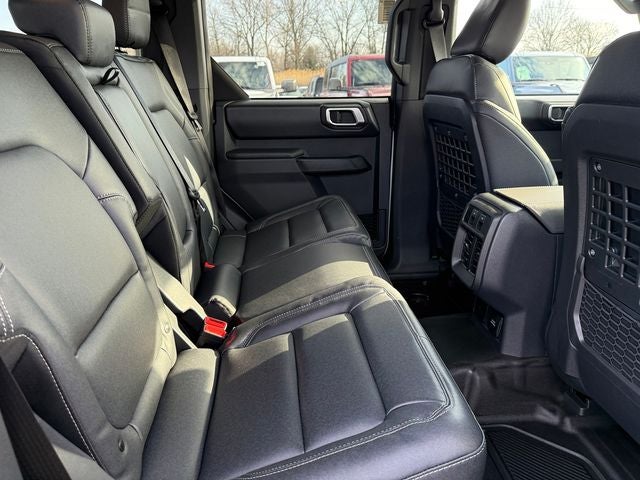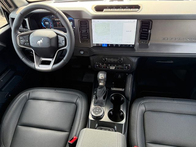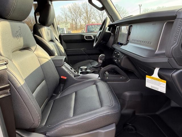 Avalanche Gray 2026 Ford Bronco Badlands 4WD 10-Speed Automatic 2.3L EcoBoost I-4 2-Door Intelligent Access with Lock/Unlock, 4-Wheel Disc Brakes, 4.7 Axle Ratio, 7 Speakers, ABS brakes, Air Conditioning, Alloy wheels, AM/FM radio: SiriusXM with 360L, AM/FM Stereo, Ambient Footwell Lighting, Auto High-Beam Headlamps, Auto High-beam Headlights, Auto-dimming Rear-View mirror, BLIS Blind Spot Information System, Brake assist, Compass, Connected Navigation, Delay-off headlights, Driver and Front Passenger Illuminated Sliding Visor Vanity Mirrors, Driver door bin, Driver vanity mirror, Dual front impact airbags, Dual front side impact airbags, Dual Smart Charging USB Ports, Dual-Zone Electronic Automatic Temperature Control, Electronic Stability Control, Emergency communication system: 911 Assist, Equipment Group 332A Mid Package, Exterior Parking Camera Rear, Ford Connectivity Package (1-Year Included), Front and Rear Floor Liners Without Carpet Floor Mats, Front anti-roll bar, Front Bucket Seats, Front Center Armrest, Front fog lights, Front reading lights, Front Row Heated Seats, Front wheel independent suspension, Fully automatic headlights, Hard Top Sound Deadening Headliner, Heated door mirrors, Heated front seats, Heated Steering Wheel, Illuminated entry, Integrated roll-over protection, Lane-Keeping System, Leather Shift Knob, Low tire pressure warning, Marine Grade Vinyl Heated Bucket Seats, Occupant sensing airbag, Outside temperature display, Overhead airbag, Overhead console, Painted Hard Top, Panic alarm, Passenger door bin, Passenger vanity mirror, Power door mirrors, Power steering, Power windows, Pre-Collision Assist with Automatic Emergency Braking, Pro Power Onboard - 400W, Radio data system, Raptor-Style Running Board, Rear Parking Sensors, Rear-View Camera, Rear-Window Defroster and Washer, Remote keyless entry, Security system, SiriusXM with 360L, Speed control, Split folding rear seat, Steering wheel mounted audio controls, SYNC 4, Tachometer, Telescoping steering wheel, Tilt steering wheel, Traction control, Trip computer, Variably intermittent wipers, Voltmeter, Wheels: 17 Carbonized Gray-Painted Aluminum.