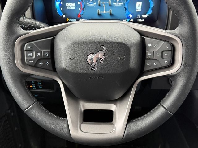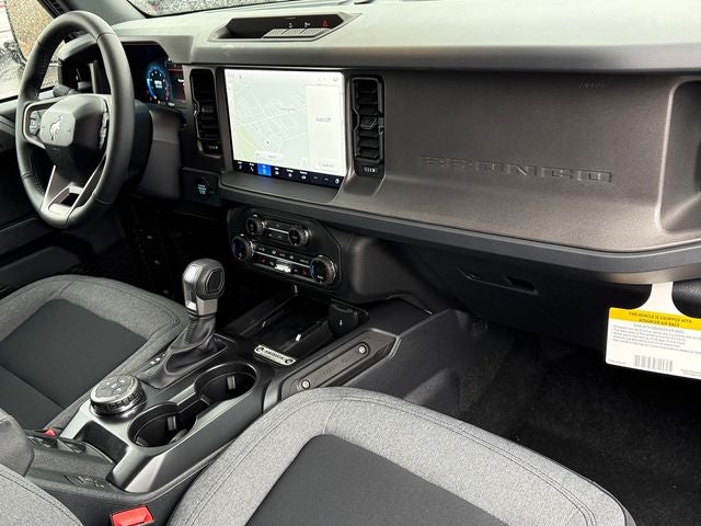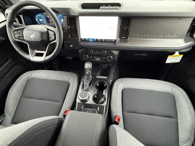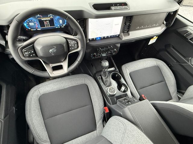 Avalanche Gray 2026 Ford Bronco Big Bend 4WD 10-Speed Automatic 2.3L EcoBoost I-4 2-Door Intelligent Access with Lock/Unlock, 4-Wheel Disc Brakes, 4.46 Axle Ratio, 7 Speakers, ABS brakes, Air Conditioning, Alloy wheels, AM/FM radio: SiriusXM with 360L, AM/FM Stereo, Ambient Footwell Lighting, Auto High-Beam Headlamps, Auto High-beam Headlights, Black Appearance Package, Black Molded-in-Color Door Handles, Black Molded-in-Color Fender Flares, Black Molded-in-Color Sideview Mirror Caps, Black-Painted Molded-in-Color Grille, BLIS Blind Spot Information System, Brake assist, Cloth Bucket Seats, Compass, Connected Navigation, Delay-off headlights, Driver and Front Passenger Illuminated Sliding Visor Vanity Mirrors, Driver door bin, Driver vanity mirror, Dual front impact airbags, Dual front side impact airbags, Dual Smart Charging USB Ports, Dual-Zone Electronic Automatic Temperature Control, Electronic Stability Control, Emergency communication system: 911 Assist, Equipment Group 222A Mid Package, Exterior Parking Camera Rear, Ford Connectivity Package (1-Year Included), Front and Rear Floor Liners Without Carpet Floor Mats, Front anti-roll bar, Front Bucket Seats, Front Center Armrest, Front reading lights, Front Row Heated Seats, Front wheel independent suspension, Fully automatic headlights, Hard Top Sound Deadening Headliner, Heated door mirrors, Illuminated entry, Integrated roll-over protection, Lane-Keeping System, Low tire pressure warning, Occupant sensing airbag, Outside temperature display, Overhead airbag, Overhead console, Panic alarm, Passenger door bin, Passenger vanity mirror, Power door mirrors, Power steering, Power windows, Pre-Collision Assist with Automatic Emergency Braking, Pro Power Onboard - 400W, Radio data system, Rear Parking Sensors, Rear-View Camera, Rear-Window Defroster and Washer, Remote keyless entry, Security system, Shadow Black Painted Hard Top, Side Step, SiriusXM with 360L, Speed control, Split folding rear seat, Steering wheel mounted audio controls, SYNC 4, Tachometer, Telescoping steering wheel, Tilt steering wheel, Traction control, Trip computer, Variably intermittent wipers, Wheels: 17 Carbonized Gray-Painted Aluminum.