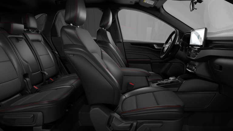 Star White Metallic Tri-Coat 2026 Ford Escape Hybrid ST-Line Select AWD eCVT 2.5L iVCT 2.5L iVCT, 10-Way Power Driver's Seat w/Memory, 2.91 Axle Ratio, 4-Way Manual Front Passenger Seat, 4-Wheel Disc Brakes, 6 Speakers, 8-Way Power Driver Seat, ABS brakes, Adaptive Cruise Control with Stop-and-Go, Air Conditioning, Alloy wheels, AM/FM radio: SiriusXM 360L, Auto High-beam Headlights, Automatic temperature control, Black Roof-Rack Side Rails, Brake assist, Bumpers: body-color, Compass, Connected Navigation (1-Year Included), Delay-off headlights, Digital Rear View Camera, Driver door bin, Driver vanity mirror, Dual front impact airbags, Dual front side impact airbags, Electronic Fuel Door Release, Electronic Stability Control, Emergency communication system: SYNC 4 911 Assist, Equipment Group 400A, Evasive Steering Assist, Ford App, Ford Co-Pilot360 Assist+, Four wheel independent suspension, Front and Rear Floor Liners with Carpet Mats, Front anti-roll bar, Front Bucket Seats, Front Center Armrest, Front dual zone A/C, Front fog lights, Front reading lights, Fully automatic headlights, Heated door mirrors, Heated front seats, Heated steering wheel, Illuminated entry, Intersection Assist, Knee airbag, Low tire pressure warning, Memory seat, Neutral Towing Capability, Occupant sensing airbag, Outside temperature display, Overhead airbag, Overhead console, Panic alarm, Panoramic Vista Roof, Partial Vinyl/Cloth Heated Front Sport Contour Bucket Seats with Red Stitching, Passenger door bin, Passenger vanity mirror, Pedestrian Alert Sounder, Power door mirrors, Power driver seat, Power Liftgate, Power steering, Power windows, Predictive Speed Assist, Radio data system, Radio: AM/FM Stereo with SiriusXM 360L, Rear anti-roll bar, Rear Parking Sensor, Rear reading lights, Rear seat center armrest, Rear window defroster, Rear window wiper, Remote keyless entry, Speed control, Speed-sensing steering, Speed-Sensitive Wipers, Split folding rear seat, Spoiler, Sport steering wheel, Steering wheel mounted audio controls, SYNC 4, SYNC 4 with Enhanced Voice Recognition, Tachometer, Tech Pack #1, Telescoping steering wheel, Tilt steering wheel, Traction control, Trip computer, Variably intermittent wipers, Wheels: 18 Rock Metallic Painted Aluminum, Wheels: 19 Machined-Face Ebony-Painted Aluminum, 2.5L iVCT.