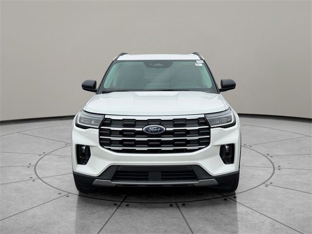Star White Metallic Tri-Coat 2026 Ford Explorer Active 4WD 10-Speed Automatic 2.3L EcoBoost I-4 4WD, 3rd row seats: bench, 4-Wheel Disc Brakes, 6 Speakers, ABS brakes, Air Conditioning, Alloy wheels, AM/FM radio: SiriusXM with 360L, AM/FM Stereo, Apple CarPlay/Android Auto, Auto High-beam Headlights, Automatic temperature control, Brake assist, Bumpers: body-color, Compass, Delay-off headlights, Driver door bin, Driver vanity mirror, Dual front impact airbags, Dual front side impact airbags, Electronic Stability Control, Emergency communication system: 911 Assist, Exterior Parking Camera Rear, Four wheel independent suspension, Front and Second Rows Floor Liners Without Floor Mats, Front anti-roll bar, Front Bucket Seats, Front Center Armrest, Front dual zone A/C, Front reading lights, Fully automatic headlights, Heated door mirrors, Illuminated entry, Knee airbag, Low tire pressure warning, Navigation System, Occupant sensing airbag, Outside temperature display, Overhead airbag, Overhead console, Panic alarm, Passenger door bin, Passenger vanity mirror, Power door mirrors, Power driver seat, Power steering, Power windows, Rear air conditioning, Rear anti-roll bar, Rear reading lights, Rear window defroster, Rear window wiper, Remote keyless entry, Security system, SiriusXM with 360L (3-Year Plan), Speed control, Speed-sensing steering, Speed-Sensitive Wipers, Split folding rear seat, Spoiler, Steering wheel mounted audio controls, Tachometer, Telescoping steering wheel, Tilt steering wheel, Traction control, Trip computer, Variably intermittent wipers, Wheels: 18 Sparkle Silver-Painted Aluminum, 4WD.