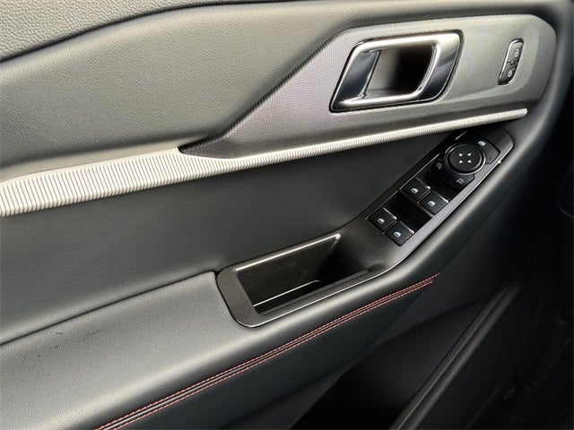 Agate Black Metallic 2026 Ford Explorer ST-Line 4WD 10-Speed Automatic 2.3L EcoBoost I-4 4WD, 10 Speakers, 2nd Row Captain's Chairs w/E-Z Entry and Armrest, 3rd row seats: bench, 4-Wheel Disc Brakes, ABS brakes, Air Conditioning, Alloy wheels, AM/FM radio: SiriusXM with 360L, Apple CarPlay/Android Auto, Auto High-beam Headlights, Automatic temperature control, BlueCruise (equipment + 1-Year + 90-Day Plan), BlueCruise Hardware, Brake assist, Bumpers: body-color, Compass, Delay-off headlights, Driver door bin, Driver vanity mirror, Dual front impact airbags, Dual front side impact airbags, Electronic Stability Control, Emergency communication system: 911 Assist, Equipment Group 300A Standard Package, Exterior Parking Camera Rear, Four wheel independent suspension, Front and 2nd Rows Floor Liners with Carper Floor Mats, Front anti-roll bar, Front Bucket Seats, Front Center Armrest, Front dual zone A/C, Front fog lights, Front reading lights, Fully automatic headlights, Garage door transmitter, Heated door mirrors, Heated front seats, Heated steering wheel, Heated Unique Cloth Captain's Chairs, Illuminated entry, Knee airbag, Leather steering wheel, Low tire pressure warning, Navigation System, Occupant sensing airbag, Outside temperature display, Overhead airbag, Overhead console, Panic alarm, Panoramic Fixed Glass Roof with Power Shade, Passenger door bin, Passenger vanity mirror, Power door mirrors, Power driver seat, Power Liftgate, Power passenger seat, Power steering, Power windows, Radio: B&O Sound System by Bang and Olufsen, Rear air conditioning, Rear anti-roll bar, Rear reading lights, Rear window defroster, Rear window wiper, Remote keyless entry, Security system, Speed control, Speed-sensing steering, Speed-Sensitive Wipers, Split folding rear seat, Spoiler, Steering wheel mounted audio controls, Tachometer, Telescoping steering wheel, Tilt steering wheel, Traction control, Trip computer, Variably intermittent wipers, Wheels: 20 Ebony-Painted Machined Aluminum, 4WD.