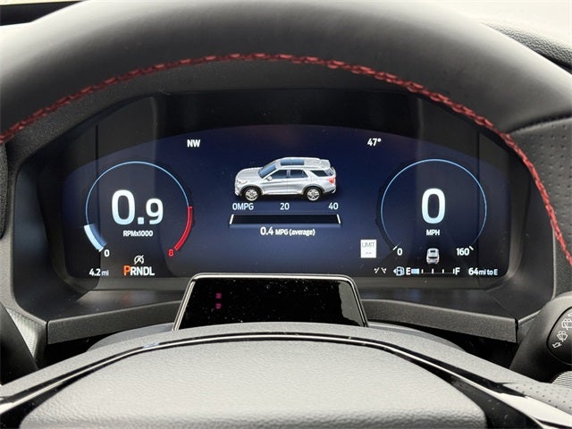 Space White Metallic 2026 Ford Explorer ST-Line 4WD 10-Speed Automatic 2.3L EcoBoost I-4 4WD, 10 Speakers, 110V/150W AC Power Outlet, 2nd Row Captain's Chairs w/E-Z Entry and Armrest, 2nd Row Heated Seats, 3rd row seats: bench, 4-Wheel Disc Brakes, ABS brakes, Air Conditioning, Alloy wheels, AM/FM radio: SiriusXM with 360L, Ambient Lighting, Apple CarPlay/Android Auto, Auto High-beam Headlights, Auto-Dimming Interior Rear-View Mirror, Automatic temperature control, BlueCruise (equipment + 1-Year + 90-Day Plan), BlueCruise Hardware, Brake assist, Bumpers: body-color, Compass, Delay-off headlights, Driver door bin, Driver vanity mirror, Dual front impact airbags, Dual front side impact airbags, Electronic Stability Control, Emergency communication system: 911 Assist, Equipment Group 300A Standard Package, Exterior Parking Camera Rear, Four wheel independent suspension, Front and 2nd Rows Floor Liners with Carper Floor Mats, Front anti-roll bar, Front Bucket Seats, Front Center Armrest, Front dual zone A/C, Front fog lights, Front reading lights, Fully automatic headlights, Garage door transmitter, Heated door mirrors, Heated front seats, Heated steering wheel, Heated Unique Cloth Captain's Chairs, Illuminated entry, Knee airbag, Leather steering wheel, Low tire pressure warning, Manual-Folding Sideview Mirrors, Memory Driver's Seat, Navigation System, Occupant sensing airbag, Outside temperature display, Overhead airbag, Overhead console, Panic alarm, Panoramic Fixed Glass Roof with Power Shade, Passenger door bin, Passenger vanity mirror, Performance Brakes, Power door mirrors, Power driver seat, Power Liftgate, Power passenger seat, Power steering, Power windows, Premium Package, Radio: B&O Sound System by Bang and Olufsen, Rain-Sensing Wipers (front Only), Rear air conditioning, Rear anti-roll bar, Rear reading lights, Rear window defroster, Rear window wiper, Red Painted Performance Front and Rear Brake Calipers, Remote keyless entry, Security system, Speed control, Speed-sensing steering, Speed-Sensitive Wipers, Split folding rear seat, Spoiler, ST-Line Street Pack, Steering wheel mounted audio controls, Tachometer, Telescoping steering wheel, Tilt steering wheel, Traction control, Trip computer, Variably intermittent wipers, Wheels: 20 Ebony-Painted Machined Aluminum, Wheels: 21 Magnetite-Painted Aluminum, 4WD.