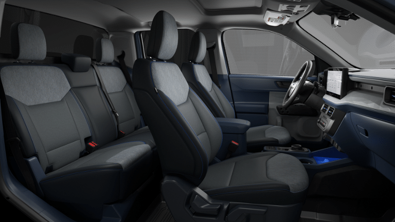 Azure Gray Metallic Tri-Coat 2026 Ford Maverick XLT AWD CVT 2.5L I-4 Hybrid 2.5L I-4 Hybrid, 2.91 Axle Ratio, 4-Wheel Disc Brakes, 6 Speakers, ABS brakes, Air Conditioning, Alloy wheels, AM/FM radio: SiriusXM with 360L, Apple CarPlay/Android Auto, Auto High Beams, Auto High-beam Headlights, Automatic temperature control, BLIS with Cross-Traffic Alert and Trailer Coverage, Brake assist, Bumpers: body-color, Compass, Delay-off headlights, Driver door bin, Driver vanity mirror, Dual front impact airbags, Dual front side impact airbags, Electronic Stability Control, Emergency communication system: SYNC 4 911 Assist, Equipment Group 301A, Exit Warning, Exterior Parking Camera Rear, Ford Co-Pilot360, Ford Connectivity Package (1-Year Included), Ford Connectivity Package (one-Time Purchase - 7 Years), Four wheel independent suspension, Front and Rear Floor Liners Without Carpet Mats, Front anti-roll bar, Front Bucket Seats, Front Center Armrest, Front reading lights, Fully automatic headlights, Heated Mirror with Painted Black Skull Caps, Heated Seats, Illuminated entry, Internet access capable: 5G Modem - Ford Connectivity Package, Intersection Assist, Knee airbag, Lane-Keeping System, LED Box Lighting, Low tire pressure warning, Occupant sensing airbag, Outside temperature display, Overhead airbag, Overhead console, Panic alarm, Passenger door bin, Passenger vanity mirror, Power door mirrors, Power Glass Manual-Folding Mirrors, Power Moonroof, Power steering, Power windows, Pre-Collision Assist with Automatic Emergency Braking, Pro Power Onboard - 400W, Radio data system, Radio: AM/FM Stereo with 6 Speakers, Rear anti-roll bar, Rear Cross Traffic Braking, Rear Parking Sensors, Rear seat center armrest, Rear step bumper, Rear-View Camera, Remote keyless entry, Remote Start System, Security system, SiriusXM with 360L, Soft Vinyl Wrapped Heated Steering Wheel, Speed control, Speed-sensing steering, Steering wheel mounted audio controls, SYNC 4 with Enhanced Voice Recognition, Telescoping steering wheel, Tilt steering wheel, Traction control, Trip computer, Unique Cloth Front Bucket Seats, Wheels: 17 Carbonized Gray Painted Aluminum, XLT Luxury Package, 2.5L I-4 Hybrid.
