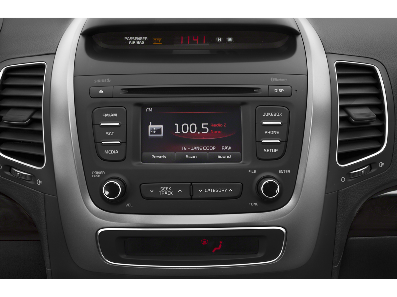 3.648 Axle Ratio, 4-Wheel Disc Brakes, 6 Speakers, ABS brakes, Air Conditioning, Alloy wheels, AM/FM radio: SiriusXM, AM/FM/CD/MP3 Audio System, Anti-whiplash front head restraints, Black Rear Bumper Protector, Brake assist, Bumpers: body-color, Cargo Mat, Carpet Floor Mats (5 Seat), CD player, Delay-off headlights, Driver door bin, Driver vanity mirror, Dual front impact airbags, Dual front side impact airbags, Electronic Stability Control, Four wheel independent suspension, Front anti-roll bar, Front Bucket Seats, Front Center Armrest, Front reading lights, Heated door mirrors, Illuminated entry, Illuminated Scuff Plates, Low tire pressure warning, Occupant sensing airbag, Overhead airbag, Overhead console, Panic alarm, Passenger door bin, Passenger vanity mirror, Power door mirrors, Power steering, Power windows, Rear anti-roll bar, Rear seat center armrest, Rear window defroster, Rear window wiper, Remote keyless entry, Speed control, Speed-sensing steering, Split folding rear seat, Steering wheel mounted audio controls, Tachometer, Telescoping steering wheel, Tilt steering wheel, Traction control, Tricot Fabric Seat Trim, Trip computer, Turn signal indicator mirrors, Variably intermittent wipers, Wheel Locks, Wheels: 17 x 7.0 Silver Painted Alloy. Satin Metal 2015 Kia Sorento LX FWD 6-Speed Automatic with Sportmatic 2.4L I4 DGI DOHC Dual CVVT