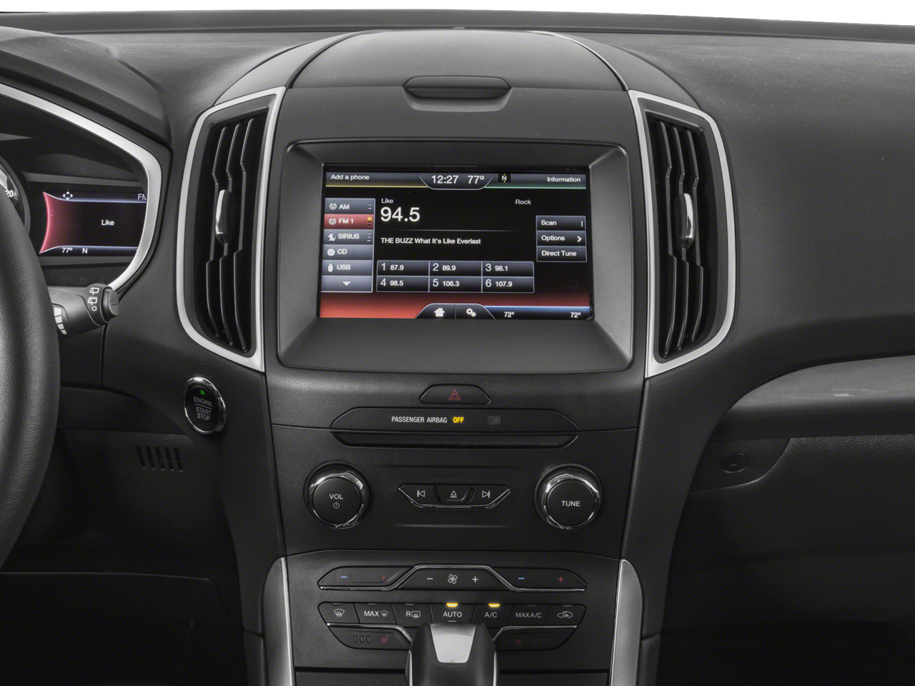 AWD, 110V/150W AC Power Outlet, 3.36 Axle Ratio, 4-Wheel Disc Brakes, 6 Speakers, ABS brakes, Air Conditioning, Alloy wheels, AM/FM radio: SiriusXM, AM/FM Stereo w/Single CD Player, Auto-dimming Rear-View mirror, Automatic temperature control, Brake assist, Bumpers: body-color, CD player, Compass, Convenience Package, Delay-off headlights, Driver door bin, Driver vanity mirror, Dual front impact airbags, Dual front side impact airbags, Electronic Stability Control, Emergency communication system: 911 Assist, Equipment Group 201A, Exterior Parking Camera Rear, Foot-Activated Hands-Free Liftgate, Four wheel independent suspension, Front anti-roll bar, Front Bucket Seats, Front Center Armrest w/Storage, Front dual zone A/C, Front License Plate Bracket, Front reading lights, Fully automatic headlights, Heated door mirrors, Illuminated entry, Knee airbag, Leather Shift Knob, Leather-Trimmed Heated Bucket Seats, Low tire pressure warning, Occupant sensing airbag, Outside temperature display, Overhead airbag, Overhead console, Panic alarm, Passenger door bin, Passenger vanity mirror, Perimeter Alarm, Power door mirrors, Power driver seat, Power passenger seat, Power steering, Power windows, Premium 9 Speaker Audio System, Rear anti-roll bar, Rear Parking Sensors, Rear reading lights, Rear seat center armrest, Rear window defroster, Rear window wiper, Remote keyless entry, Remote Start System, SiriusXM Radio, SiriusXM Traffic & Travel Link, Speed control, Speed-Sensitive Wipers, Split folding rear seat, Spoiler, Steering wheel mounted audio controls, SYNC 3 Communications & Entertainment System, SYNC Communications & Entertainment System, Tachometer, Telescoping steering wheel, Tilt steering wheel, Traction control, Trip computer, Turn signal indicator mirrors, Unique Cloth Bucket Seats, Universal Garage Door Opener (UGDO), Variably intermittent wipers, Voice-Activated Touchscreen Navigation System, Wheels: 18 Sparkle Silver Painted Aluminum, AWD. White Platinum Clearcoat Metallic 2018 Ford Edge SEL AWD 6-Speed Automatic 3.5L V6 Ti-VCT