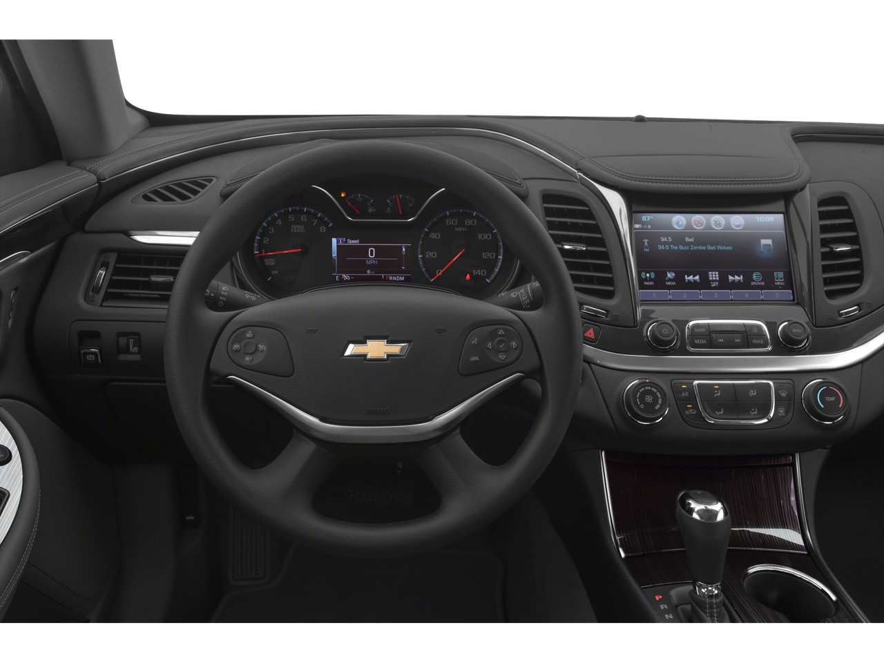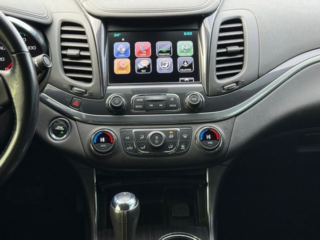 Ford Blue Certified Certified, 100-Watt 6-Speaker System, 18 Painted Alloy Wheels, 2.77 Final Drive Axle Ratio, 3.23 Final Drive Axle Ratio, 4-Way Manual Front Passenger Seat Adjuster, 4-Wheel Disc Brakes, 6 Speakers, 70AH Battery, 8-Way Power Driver Seat Adjuster, 8 Diagonal Color Infotainment Display, 800 Cold-Cranking Amps Battery, ABS brakes, Air Conditioning, Alloy wheels, AM/FM radio: SiriusXM, Apple CarPlay/Android Auto, Automatic temperature control, Brake assist, Bumpers: body-color, Compass, Delay-off headlights, Driver door bin, Driver Power Lumbar Seat Adjuster, Driver vanity mirror, Dual front impact airbags, Dual front side impact airbags, Dual Stainless-Steel Exhaust, Electronic Stability Control, Emergency communication system: OnStar and Chevrolet connected services capable, Exterior Parking Camera Rear, Four wheel independent suspension, Front anti-roll bar, Front Bucket Seats, Front Center Armrest, Front dual zone A/C, Front Passenger Power Lumbar Seat Adjuster, Front reading lights, Fully automatic headlights, Heated door mirrors, Illuminated entry, Knee airbag, Low tire pressure warning, Occupant sensing airbag, Overhead airbag, Overhead console, Panic alarm, Passenger door bin, Passenger vanity mirror, Power door mirrors, Power driver seat, Power steering, Power windows, Preferred Equipment Group 1LT, Premium Cloth/Leatherette Seat Trim, Radio data system, Radio: Chevrolet Infotainment System AM/FM Stereo, Rear anti-roll bar, Rear reading lights, Rear seat center armrest, Rear side impact airbag, Rear window defroster, Remote keyless entry, Security system, SiriusXM Radio, Speed control, Speed-sensing steering, Split folding rear seat, Steering wheel mounted audio controls, Stop-Start Engine Control System, Tachometer, Telescoping steering wheel, Tilt steering wheel, Traction control, Trip computer, Turn signal indicator mirrors, USB Port, Variably intermittent wipers. Black 2019 Chevrolet Impala LT FWD 6-Speed Automatic Electronic with Overdrive 3.6L V6 DI DOHC
