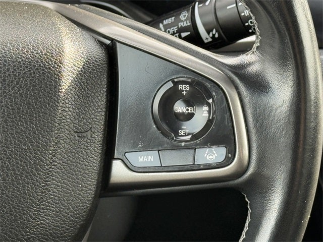 Ford Blue Certified Certified, Black w/Fabric Seating Surfaces, 4-Wheel Disc Brakes, 8 Speakers, ABS brakes, Adaptive Cruise Control: Adaptive Cruise Control (ACC) with Low-Speed Follow, Air Conditioning, Alloy wheels, AM/FM radio: SiriusXM, Apple CarPlay/Android Auto, Auto High-beam Headlights, Automatic temperature control, Brake assist, Bumpers: body-color, Delay-off headlights, Driver door bin, Driver vanity mirror, Dual front impact airbags, Dual front side impact airbags, Electronic Stability Control, Emergency communication system: HondaLink, Exterior Parking Camera Rear, Fabric Seating Surfaces, Forward collision: Collision Mitigation Braking System (CMBS) + FCW mitigation, Four wheel independent suspension, Front anti-roll bar, Front Bucket Seats, Front Center Armrest, Front dual zone A/C, Front fog lights, Front reading lights, Fully automatic headlights, Heated door mirrors, Illuminated entry, Lane departure: Lane Keeping Assist System (LKAS) active, Leather Shift Knob, Low tire pressure warning, Occupant sensing airbag, Outside temperature display, Overhead airbag, Overhead console, Panic alarm, Passenger door bin, Passenger vanity mirror, Power door mirrors, Power driver seat, Power moonroof, Power steering, Power windows, Radio data system, Radio: 180-Watt HD Audio System, Rear anti-roll bar, Rear seat center armrest, Rear window defroster, Rear window wiper, Reclining Front Bucket Seats, Remote keyless entry, Security system, Speed control, Speed-sensing steering, Split folding rear seat, Spoiler, Steering wheel mounted audio controls, Tachometer, Telescoping steering wheel, Tilt steering wheel, Traction control, Trip computer, Variably intermittent wipers, Black w/Fabric Seating Surfaces. Modern Steel Metallic 2020 Honda Civic EX FWD CVT 1.5L I4 DOHC 16V
