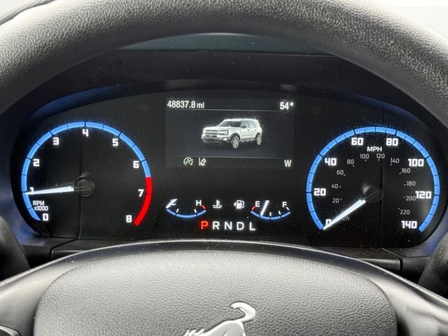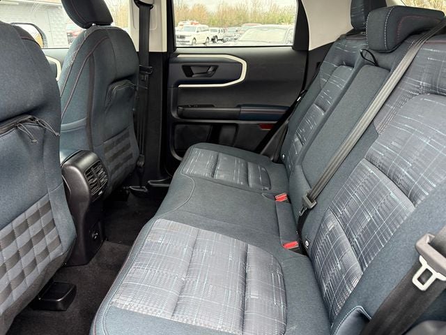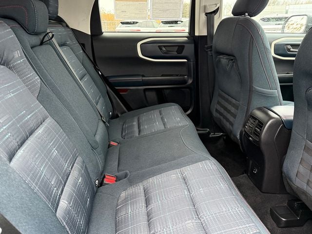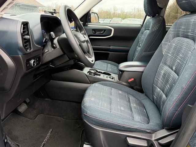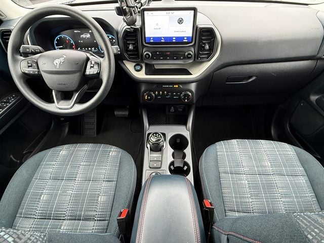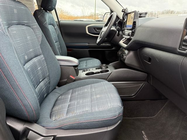 Ford Gold Certified Certified, 3.80 Axle Ratio, 4-Wheel Disc Brakes, 6 Speakers, ABS brakes, Air Conditioning, Alloy wheels, AM/FM radio: SiriusXM, AM/FM Stereo, Auto High-beam Headlights, Automatic temperature control, Brake assist, Cargo Mat, Compass, Delay-off headlights, Driver door bin, Driver vanity mirror, Dual front impact airbags, Dual front side impact airbags, Electronic Stability Control, Emergency communication system: SYNC 3 911 Assist, Equipment Group 250A, Four wheel independent suspension, Front anti-roll bar, Front Bucket Seats, Front Center Armrest, Front fog lights, Front License Plate Bracket, Front reading lights, Fully automatic headlights, Heated door mirrors, Illuminated entry, Knee airbag, Low tire pressure warning, Occupant sensing airbag, Outside temperature display, Overhead airbag, Overhead console, Panic alarm, Passenger door bin, Passenger vanity mirror, Plaid Cloth Front Bucket Seats, Power door mirrors, Power steering, Power windows, Radio data system, Rear anti-roll bar, Rear reading lights, Rear seat center armrest, Rear window defroster, Rear window wiper, Remote keyless entry, Security system, SiriusXM, Speed control, Speed-sensing steering, Speed-Sensitive Wipers, Split folding rear seat, Steering wheel mounted audio controls, SYNC 3 Communications & Entertainment System, SYNC 3/Apple CarPlay/Android Auto, Tachometer, Telescoping steering wheel, Tilt steering wheel, Traction control, Trip computer, Variably intermittent wipers, Wheels: 17 Oxford White-Painted Aluminum. Blue Metallic 2023 Ford Bronco Sport Heritage 4WD 8-Speed Automatic 1.5L EcoBoost