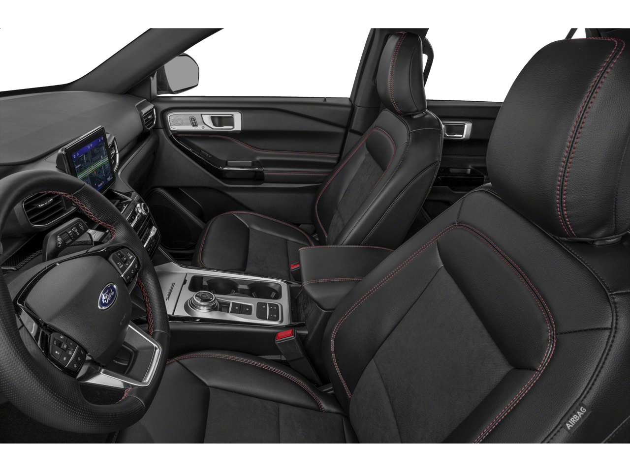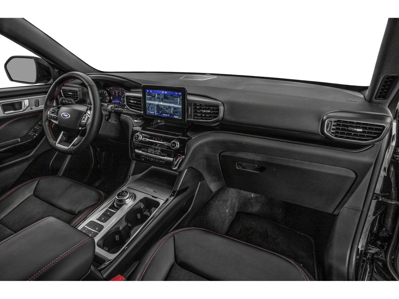 Ford Gold Certified Certified, 4WD, 12 Speakers, 20 Machined Aluminum w/Painted Pockets Wheels, 3.58 Non-Limited-Slip Rear Axle Ratio, 3rd row seats: bench, 4-Wheel Disc Brakes, 4G LTE Wi-Fi Hotspot Credit, ABS brakes, Air Conditioning, Alloy wheels, AM/FM radio: SiriusXM, Auto High-beam Headlights, Auto Start-Stop Removal (DISC), Auto-dimming Rear-View mirror, Automatic temperature control, Brake assist, Bumpers: body-color, Class IV Trailer Tow Package, Compass, Delay-off headlights, Driver door bin, Driver vanity mirror, Dual front impact airbags, Dual front side impact airbags, Electronic Stability Control, Emergency communication system: SYNC 3 911 Assist, Equipment Group 250A, Exterior Parking Camera Rear, FordPass Connect, Four wheel independent suspension, Front & Second Row Floor Liners (16B), Front anti-roll bar, Front Bucket Seats, Front Center Armrest, Front dual zone A/C, Front fog lights, Front reading lights, Fully automatic headlights, Heated door mirrors, Heated front seats, Heated steering wheel, Htd ActiveX Trimmed Captain's Chairs w/Miko Insert, Illuminated entry, Knee airbag, Leather steering wheel, Low tire pressure warning, Navigation System, Occupant sensing airbag, Outside temperature display, Overhead airbag, Overhead console, Panic alarm, Passenger door bin, Passenger vanity mirror, Power door mirrors, Power driver seat, Power Liftgate, Power passenger seat, Power steering, Power windows, Radio data system, Radio: B&O Sound System by Bang & Olufsen, Rain sensing wipers, Rear air conditioning, Rear anti-roll bar, Rear reading lights, Rear window defroster, Rear window wiper, Remote keyless entry, Security system, Speed control, Speed-sensing steering, Speed-Sensitive Wipers, Split folding rear seat, Spoiler, Steering wheel mounted audio controls, SYNC 3 Communications & Entertainment System, SYNC 3/Apple CarPlay/Android Auto, Tachometer, Telescoping steering wheel, Tilt steering wheel, Traction control, Trip computer, Twin Panel Moonroof, Variably intermittent wipers, Voice-Activated Touchscreen Navigation System, Wheels: 21 Aluminum, 4WD. Rapid Red Metallic Tinted Clearcoat 2023 Ford Explorer ST-Line 4WD 10-Speed Automatic 2.3L EcoBoost I-4