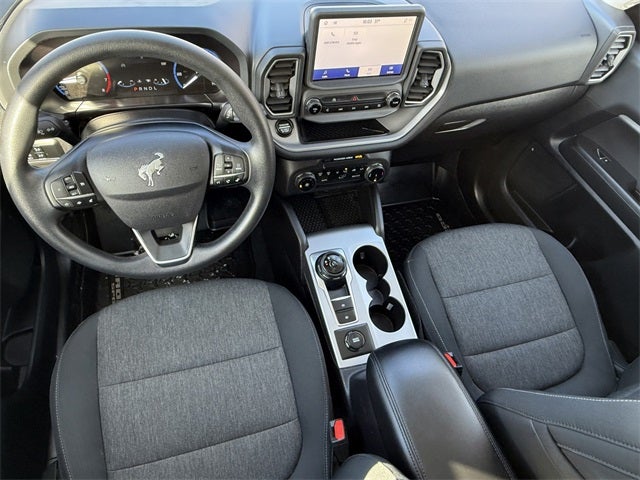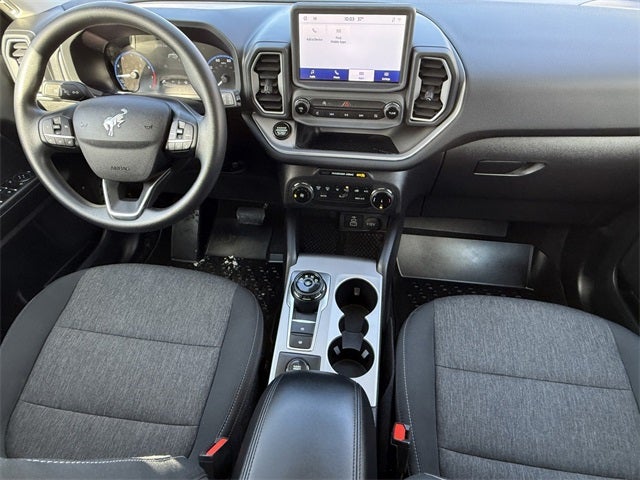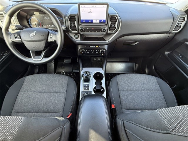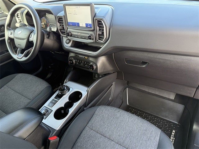 Ford Gold Certified Certified, 3.80 Axle Ratio, 4-Wheel Disc Brakes, 6 Speakers, ABS brakes, Air Conditioning, Alloy wheels, AM/FM radio: SiriusXM, AM/FM Stereo, Auto High-beam Headlights, Automatic temperature control, Brake assist, Compass, Delay-off headlights, Driver door bin, Driver vanity mirror, Dual front impact airbags, Dual front side impact airbags, Electronic Stability Control, Emergency communication system: SYNC 3 911 Assist, Equipment Group 200A, Four wheel independent suspension, Front & Rear Floor Liners w/o Carpet Mats, Front anti-roll bar, Front Bucket Seats, Front Center Armrest, Front reading lights, Fully automatic headlights, Heated door mirrors, Illuminated entry, Knee airbag, Low tire pressure warning, Occupant sensing airbag, Outside temperature display, Overhead airbag, Overhead console, Panic alarm, Passenger door bin, Passenger vanity mirror, Power door mirrors, Power steering, Power windows, Radio data system, Rear anti-roll bar, Rear reading lights, Rear seat center armrest, Rear window defroster, Rear window wiper, Remote keyless entry, Security system, SiriusXM, Speed control, Speed-sensing steering, Speed-Sensitive Wipers, Split folding rear seat, Steering wheel mounted audio controls, SYNC 3 Communications & Entertainment System, Tachometer, Telescoping steering wheel, Tilt steering wheel, Topo Graphic Package, Traction control, Trip computer, Unique Cloth Front Bucket Seats, Variably intermittent wipers, Wheels: 17 Carbonized Gray-Painted Aluminum. Atlas Blue Metallic 2024 Ford Bronco Sport Big Bend 4WD 8-Speed Automatic 1.5L EcoBoost