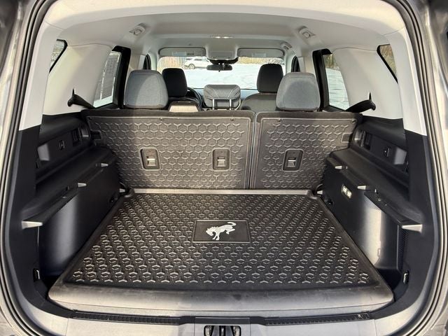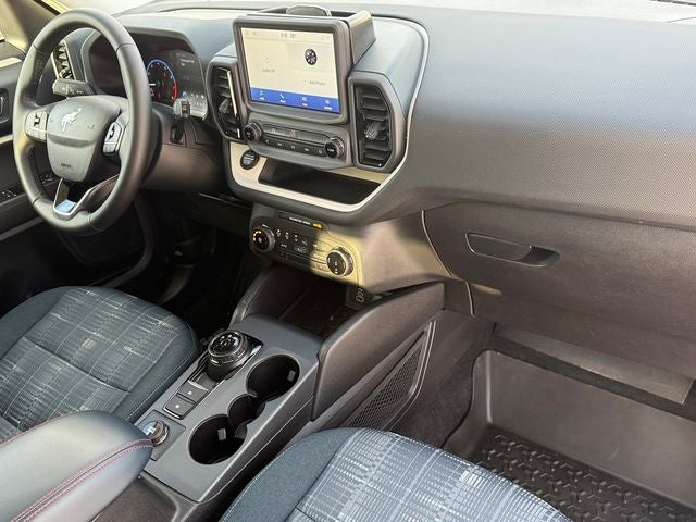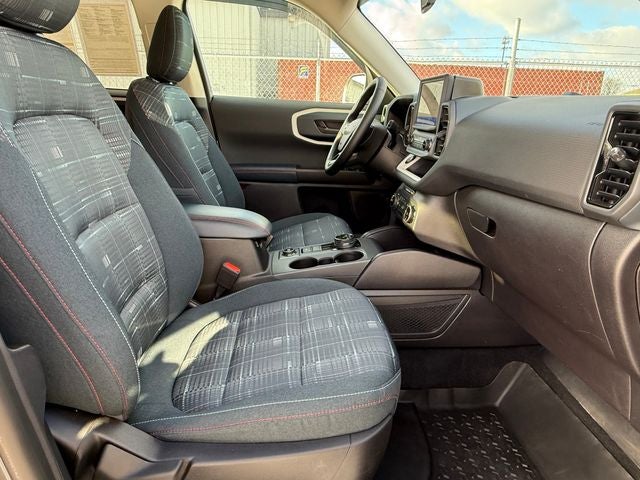 Ford Gold Certified Certified, 3.80 Axle Ratio, 4-Wheel Disc Brakes, 6 Speakers, ABS brakes, Air Conditioning, Alloy wheels, AM/FM radio: SiriusXM, AM/FM Stereo, Auto High-beam Headlights, Automatic temperature control, Brake assist, Cargo Management System, Cargo Mat, Compass, Delay-off headlights, Driver door bin, Driver vanity mirror, Dual front impact airbags, Dual front side impact airbags, Electronic Stability Control, Emergency communication system: SYNC 3 911 Assist, Equipment Group 250A, Four wheel independent suspension, Front & Rear Floor Liners w/o Carpet Mats, Front anti-roll bar, Front Bucket Seats, Front Center Armrest, Front fog lights, Front reading lights, Fully automatic headlights, Heated door mirrors, Heated Front Seats, Heritage Convenience Package, Illuminated Door Entry Keypad (DIO), Illuminated entry, Knee airbag, Low tire pressure warning, Occupant sensing airbag, Outside temperature display, Overhead airbag, Overhead console, Panic alarm, Passenger door bin, Passenger vanity mirror, Plaid Cloth Front Bucket Seats, Power door mirrors, Power steering, Power windows, Premium Wrapped Steering Wheel, Radio data system, Rear anti-roll bar, Rear Parking Sensors, Rear reading lights, Rear seat center armrest, Rear window defroster, Rear window wiper, Remote keyless entry, Security system, SiriusXM, Speed control, Speed-sensing steering, Speed-Sensitive Wipers, Split folding rear seat, Steering wheel mounted audio controls, SYNC 3 Communications & Entertainment System, Tachometer, Telescoping steering wheel, Tilt steering wheel, Traction control, Trip computer, Universal Garage Door Opener (UGDO), Variably intermittent wipers, Wheels: 17 Oxford White-Painted Aluminum, Wireless Charging Pad. Carbonized Gray Metallic 2024 Ford Bronco Sport Heritage 4WD 8-Speed Automatic 1.5L EcoBoost