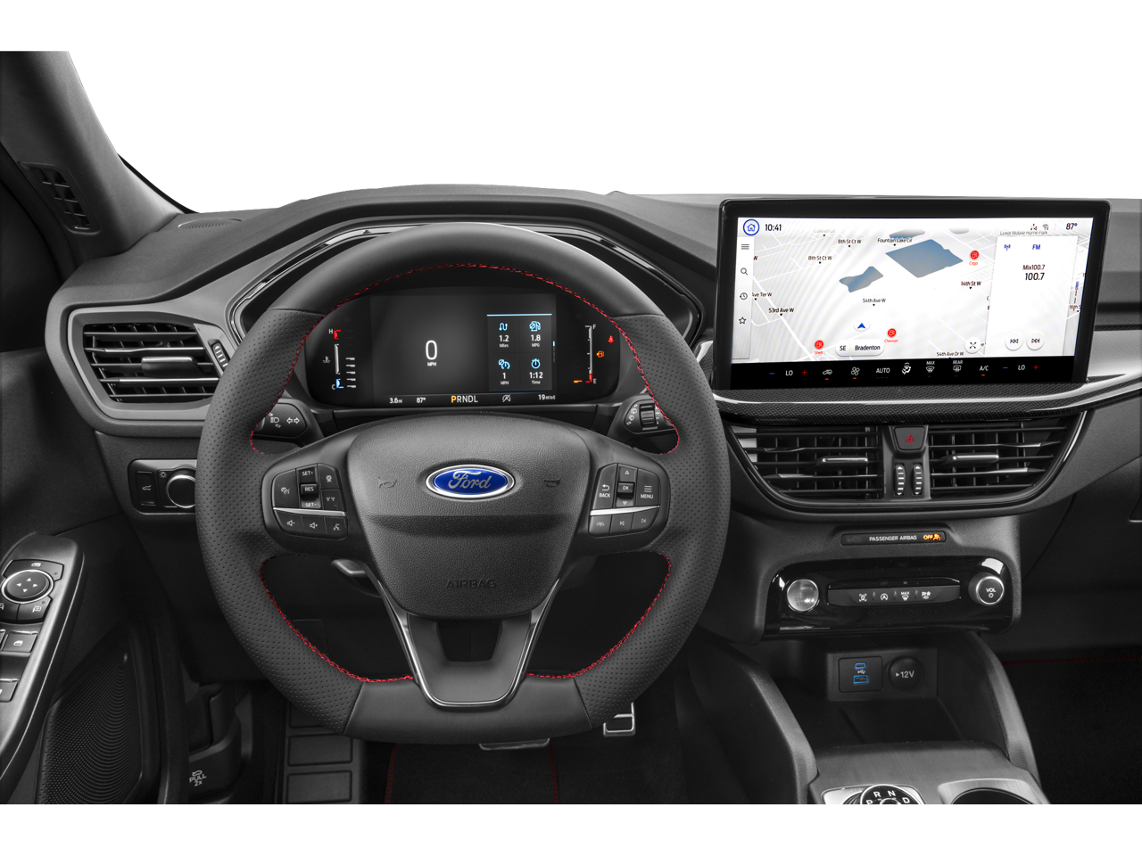 Ford Gold Certified Certified, 3.81 Axle Ratio, 4-Wheel Disc Brakes, 6 Speakers, ABS brakes, Adaptive Cruise Control w/Stop-and-Go, Air Conditioning, Alloy wheels, AM/FM radio: SiriusXM, AM/FM Stereo, Auto High-beam Headlights, Automatic temperature control, Brake assist, Bumpers: body-color, Cold Weather Package, Compass, Connected Navigation, Delay-off headlights, Driver door bin, Driver vanity mirror, Dual front impact airbags, Dual front side impact airbags, Electronic Stability Control, Emergency communication system: SYNC 4 911 Assist, Equipment Group 300A, Exterior Parking Camera Rear, Ford Co-Pilot360 Assist+, FordPass Connect, Four wheel independent suspension, Front & Rear Floor Liners w/Carpet Mats, Front anti-roll bar, Front Bucket Seats, Front Center Armrest, Front dual zone A/C, Front reading lights, Fully automatic headlights, Heated Front Row Seats, Heated Sideview Mirrors, Heated Steering Wheel, Illuminated entry, Knee airbag, Low tire pressure warning, Occupant sensing airbag, Outside temperature display, Overhead airbag, Overhead console, Panic alarm, Passenger door bin, Passenger vanity mirror, Power door mirrors, Power driver seat, Power Liftgate, Power steering, Power windows, Radio data system, Rear anti-roll bar, Rear Parking Sensor, Rear reading lights, Rear seat center armrest, Rear window defroster, Rear window wiper, Rear-View Camera, Remote keyless entry, Remote Starter System, Roof rack: rails only, Speed control, Speed Sign Recognition, Speed-sensing steering, Speed-Sensitive Wipers, Split folding rear seat, Spoiler, Sport steering wheel, Steering wheel mounted audio controls, SYNC 4, SYNC 4 w/Enhanced Voice Recognition, Tachometer, Tech Pack #1, Telescoping steering wheel, Tilt steering wheel, Traction control, Trip computer, Variably intermittent wipers, Vinyl/Cloth Front Sport Contour Bucket Seats, Wheels: 18 Rock Metallic Painted Aluminum. Rapid Red Metallic Tinted Clearcoat 2024 Ford Escape ST-Line FWD 8-Speed Automatic 1.5L EcoBoost