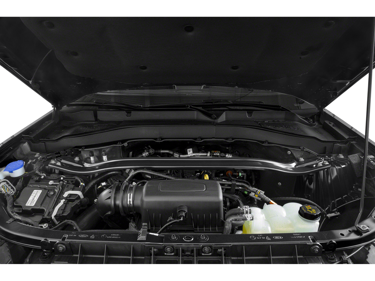 Ford Gold Certified Certified, 4WD, 12 Speakers, 20 Machined Aluminum w/Painted Pockets Wheels, 3.58 Non-Limited-Slip Rear Axle Ratio, 360-Degree Camera Credit, 3rd row seats: bench, 4-Wheel Disc Brakes, 4G LTE Wi-Fi Hotspot Credit, ABS brakes, Air Conditioning, Alloy wheels, AM/FM radio: SiriusXM, Auto High-beam Headlights, Auto-dimming Rear-View mirror, Automatic temperature control, Brake assist, Bumpers: body-color, Class IV Trailer Tow Package, Compass, Delay-off headlights, Driver door bin, Driver vanity mirror, Dual front impact airbags, Dual front side impact airbags, Electronic Stability Control, Emergency communication system: SYNC 3 911 Assist, Equipment Group 250A, Exterior Parking Camera Rear, FordPass Connect, Four wheel independent suspension, Front & Second Row Floor Liners (16B), Front anti-roll bar, Front Bucket Seats, Front Center Armrest, Front dual zone A/C, Front fog lights, Front reading lights, Fully automatic headlights, Heated door mirrors, Heated front seats, Heated steering wheel, Htd ActiveX Trimmed Captain's Chairs w/Miko Insert, Illuminated entry, Knee airbag, Leather steering wheel, Low tire pressure warning, Navigation System, Occupant sensing airbag, Outside temperature display, Overhead airbag, Overhead console, Panic alarm, Passenger door bin, Passenger vanity mirror, Power door mirrors, Power driver seat, Power Liftgate, Power passenger seat, Power steering, Power windows, Radio data system, Radio: B&O Sound System by Bang & Olufsen, Rain sensing wipers, Rear air conditioning, Rear anti-roll bar, Rear reading lights, Rear window defroster, Rear window wiper, Remote keyless entry, Security system, Speed control, Speed-sensing steering, Speed-Sensitive Wipers, Split folding rear seat, Spoiler, Steering wheel mounted audio controls, SYNC 3 Communications & Entertainment System, SYNC 3/Apple CarPlay/Android Auto, Tachometer, Telescoping steering wheel, Tilt steering wheel, Traction control, Trip computer, Twin Panel Moonroof, Variably intermittent wipers, Voice-Activated Touchscreen Navigation System, 4WD. Star White Metallic Tri-Coat 2024 Ford Explorer ST-Line 4WD 10-Speed Automatic 2.3L EcoBoost I-4