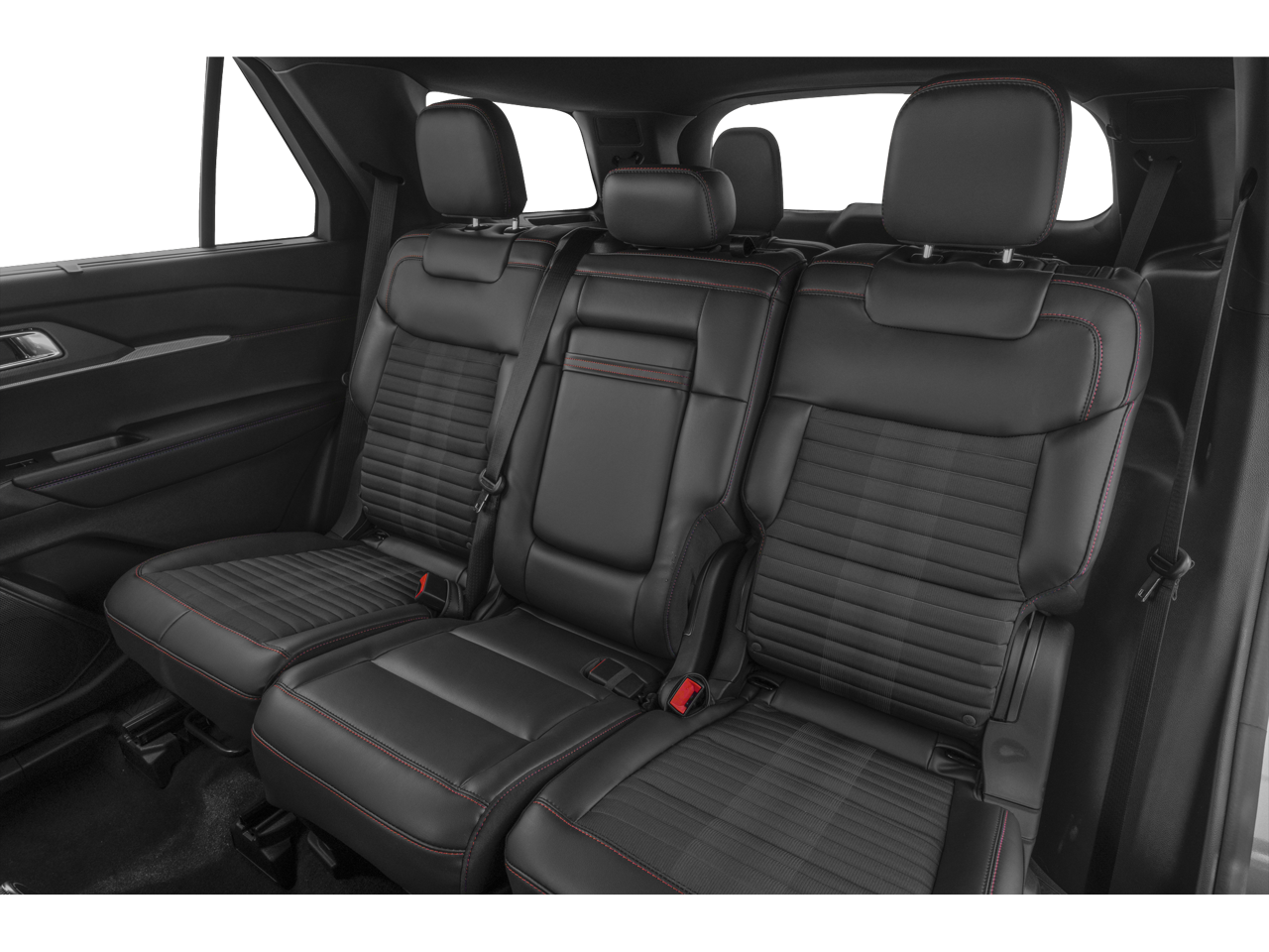 Ford Gold Certified Certified, 4WD, 10 Speakers, 2nd Row Captain's Chairs w/E-Z Entry & Armrest, 3.58 Non-Limited Slip Rear Axle, 3rd row seats: bench, 4-Wheel Disc Brakes, ABS brakes, Air Conditioning, Alloy wheels, AM/FM radio: SiriusXM with 360L, Apple CarPlay/Android Auto, Auto High-beam Headlights, Automatic temperature control, Brake assist, Bumpers: body-color, Compass, Delay-off headlights, Driver door bin, Driver vanity mirror, Dual front impact airbags, Dual front side impact airbags, Electronic Stability Control, Emergency communication system: 911 Assist, Equipment Group 300A Standard Package, Exterior Parking Camera Rear, Four wheel independent suspension, Front & 2nd Rows Floor Liners w/Carpet Floor Mats, Front anti-roll bar, Front Bucket Seats, Front Center Armrest, Front dual zone A/C, Front fog lights, Front reading lights, Fully automatic headlights, Garage door transmitter, Heated door mirrors, Heated front seats, Heated steering wheel, Heated Unique Cloth Captain's Chairs, Illuminated entry, Internet access capable: FordPass Connect 5G, Knee airbag, Leather steering wheel, Low tire pressure warning, Navigation System, Occupant sensing airbag, Outside temperature display, Overhead airbag, Overhead console, Panic alarm, Panoramic Vista Roof w/Power Shade, Passenger door bin, Passenger vanity mirror, Power door mirrors, Power driver seat, Power Liftgate, Power passenger seat, Power steering, Power windows, Radio: B&O Sound System by Bang & Olufsen, Rear air conditioning, Rear anti-roll bar, Rear reading lights, Rear window defroster, Rear window wiper, Remote keyless entry, Security system, Speed control, Speed-sensing steering, Speed-Sensitive Wipers, Split folding rear seat, Spoiler, Steering wheel mounted audio controls, Tachometer, Telescoping steering wheel, Tilt steering wheel, Traction control, Trip computer, Variably intermittent wipers, Wheels: 20 Ebony-Painted Machined Aluminum, 4WD. Rapid Red Metallic Tinted Clearcoat 2025 Ford Explorer ST-Line 4WD 10-Speed Automatic 2.3L EcoBoost I-4