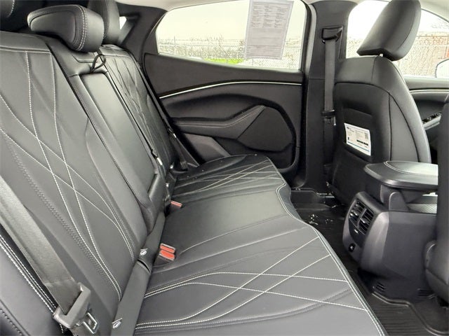 Ford EV Certified Certified, 1st & 2nd Row Floor Liners w/o Carpet Mats, 4-Wheel Disc Brakes, 6 Speakers, ABS brakes, ActiveX Bucket Seats, Air Conditioning, Alloy wheels, AM/FM radio: SiriusXM with 360L, AM/FM Stereo, Apple CarPlay/Android Auto, Auto High-beam Headlights, Auto-dimming Rear-View mirror, Automatic temperature control, Brake assist, Bumpers: body-color, Cargo Area Cover, Cargo Floor Liner, Comfort Package Lite, Compass, Delay-off headlights, Driver door bin, Driver vanity mirror, Dual front impact airbags, Dual front side impact airbags, Electronic Stability Control, Emergency communication system: 911 Assist, Equipment Group 100A Standard Package, Exterior Parking Camera Rear, Four wheel independent suspension, Front anti-roll bar, Front Bucket Seats, Front Center Armrest, Front dual zone A/C, Front reading lights, Fully automatic headlights, Garage door transmitter, Heated door mirrors, Heated Front Row Seats, Heated Steering Wheel, Illuminated entry, Interior Protection Package, Internet access capable: FordPass Connect, Knee airbag, Low tire pressure warning, Memory Driver's Seat & Sideview Mirrors, Mobile Power Cord (120V/240V), Navigation system: Connected Navigation, Occupant sensing airbag, Outside temperature display, Overhead airbag, Overhead console, Panic alarm, Passenger door bin, Passenger vanity mirror, Power door mirrors, Power driver seat, Power steering, Power windows, Radio data system, Rain sensing wipers, Rear anti-roll bar, Rear seat center armrest, Rear side impact airbag, Rear window defroster, Rear window wiper, Remote keyless entry, Security system, SiriusXM w/360L, Speed control, Speed-sensing steering, Speed-Sensitive Wipers, Split folding rear seat, Spoiler, Steering wheel mounted audio controls, SYNC 4A w/Enhanced Voice Recognition, Telescoping steering wheel, Tilt steering wheel, Traction control, Trip computer, Turn signal indicator mirrors, Variably intermittent wipers, Wheels: 19 Machined-Face Aluminum. Green Metallic 2025 Ford Mustang Mach-E Select AWD Single-Speed Automatic Electric Motor