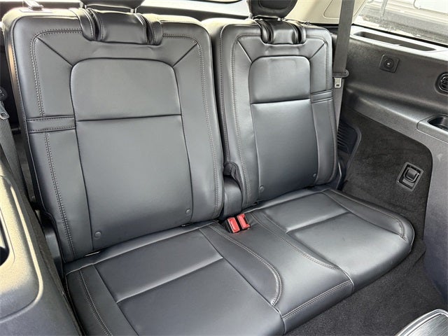 Lincoln Signature Certification Certified, 14 Speakers, 30-Way Perfect Position Seats w/Active Motion, 3rd row seats: split-bench, 4-Wheel Disc Brakes, 40/Mini Console/40 Dual Captain's Chairs, ABS brakes, Adaptive Dynamic Bending Lighting, Adaptive Pixel LED Headlamps, Adaptive suspension, Advanced Heads-Up Display, Air Conditioning, Air Glide Suspension w/Dynamic Lower Entry, All-Weather 1st & 2nd Row Floor Liners (16A), Alloy wheels, AM/FM radio: SiriusXM, Apple CarPlay/Android Auto, Audio memory, Auto Air Refresh, Auto High-beam Headlights, Auto-dimming door mirrors, Auto-dimming Rear-View mirror, Automatic temperature control, Black Exterior Elements, Body-Color Exterior Elements, Brake assist, Bumpers: body-color, Cargo Area Cover, Compass, Delay-off headlights, Driver door bin, Driver vanity mirror, Dual front impact airbags, Dual front side impact airbags, Dynamic Handling Package, Electronic Stability Control, Emergency communication system: 911 Assist, Equipment Group 201A, Four wheel independent suspension, Front anti-roll bar, Front Bucket Seats, Front Center Armrest, Front dual zone A/C, Front reading lights, Full Rear Console, Fully automatic headlights, Garage door transmitter, Genuine wood console insert, Genuine wood dashboard insert, Heads-Up Display, Heated & Ventilated Rear Seats, Heated door mirrors, Heated front seats, Heated steering wheel, HVAC memory, Illuminated entry, Illuminated Lincoln Star in Grille, Illumination Package, Jet Appearance Package, Knee airbag, Leather steering wheel, Lincoln BlueCruise Equipped (4-Years Included), Lincoln Digital Experience, Lincoln Dynamic Signature Lighting, Low tire pressure warning, Luxury Package, Memory seat, Navigation system: Connected Navigation (1-year trial), Occupant sensing airbag, Outside temperature display, Overhead airbag, Overhead console, Panic alarm, Passenger door bin, Passenger vanity mirror, Power door mirrors, Power driver seat, Power Liftgate, Power moonroof: Panoramic Vista Roof, Power passenger seat, Power steering, Power windows, Premium Lthr Heated/Ventilated Fnt Captain's Chairs, Radio data system, Radio: Revel Audio System w/14 Speakers, Radio: Revel Ultima 3D Audio System w/28 Speakers, Rain sensing wipers, Rear air conditioning, Rear anti-roll bar, Rear audio controls, Rear dual zone A/C, Rear reading lights, Rear window defroster, Rear window wiper, Remote keyless entry, Security system, SiriusXM, Speed control, Speed Dependent Lighting, Speed-Sensitive Wipers, Split folding rear seat, Spoiler, Steering wheel memory, Steering wheel mounted A/C controls, Steering wheel mounted audio controls, Tachometer, Telescoping steering wheel, Tilt steering wheel, Traction control, Trip computer, Turn signal indicator mirrors, Variably intermittent wipers, Ventilated front seats, Wheels: 21 Bright-Machined Aluminum, Wheels: 22 Black Aluminum w/Adaptive Suspension, Wheels: 22 Bright-Machined Aluminum, Wireless Charging Pad. Infinite Black Metallic Clearcoat 2025 Lincoln Aviator Reserve AWD 10-Speed Automatic 3.0L V6